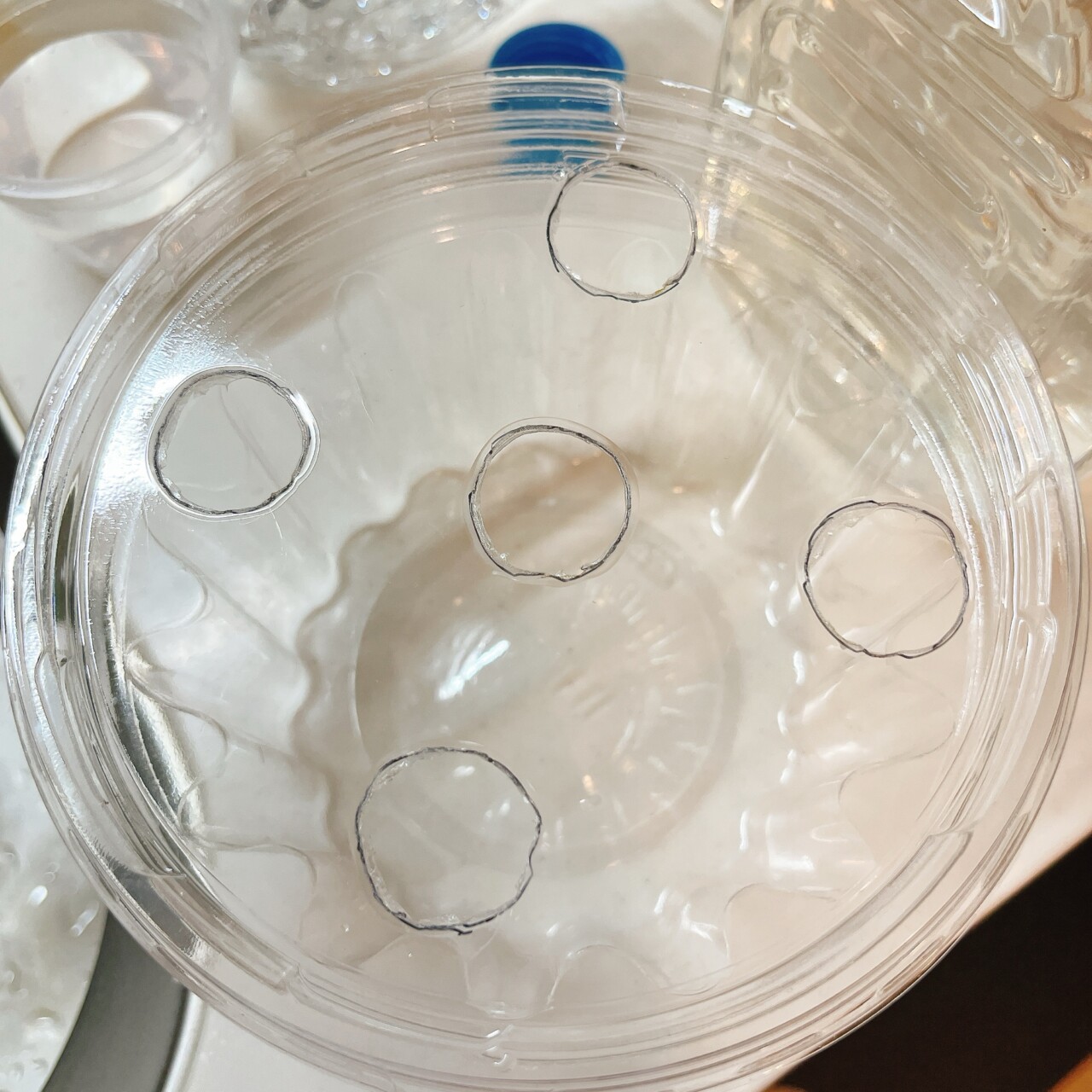 暑いからか、酸欠なのか、真ん中の葉っぱが傷んだようになっていたものがあったので、液肥を入れ替えて上面に空気穴を開けた。