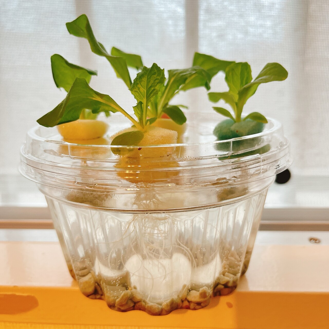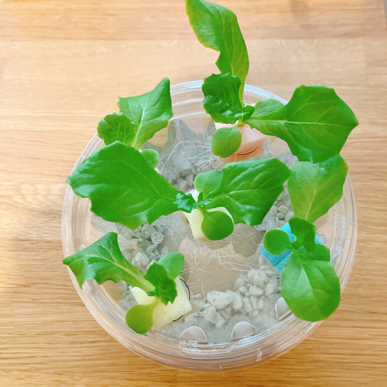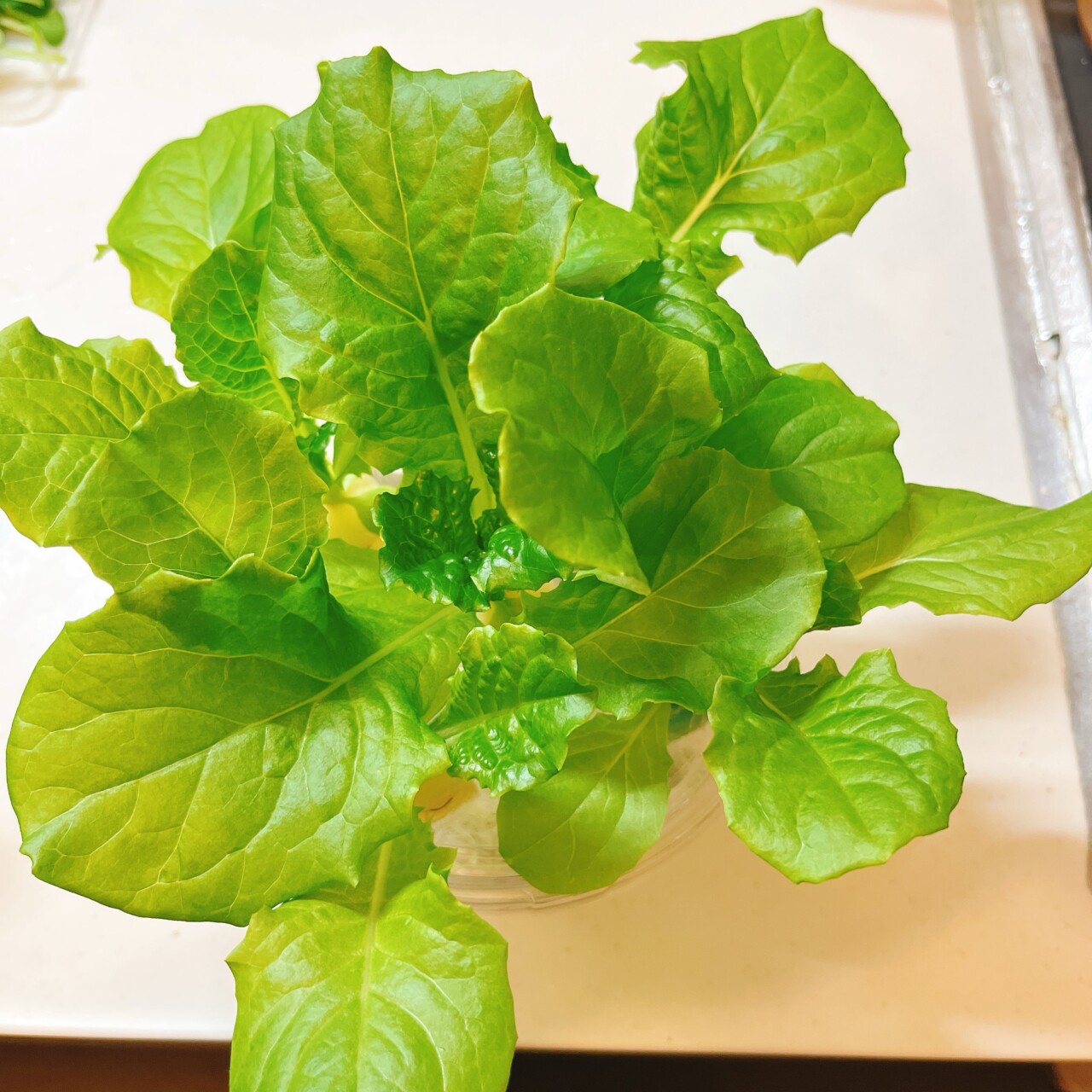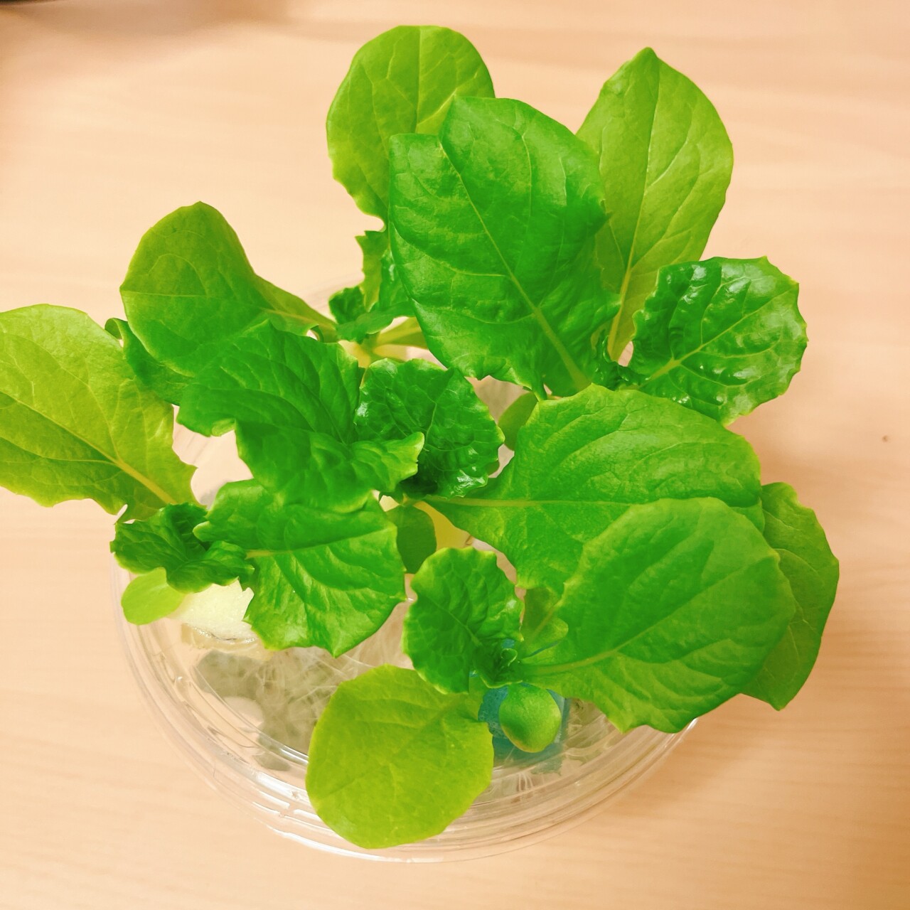 キムチ容器のもの、3日後にはかなり葉っぱが大きくなってくる。