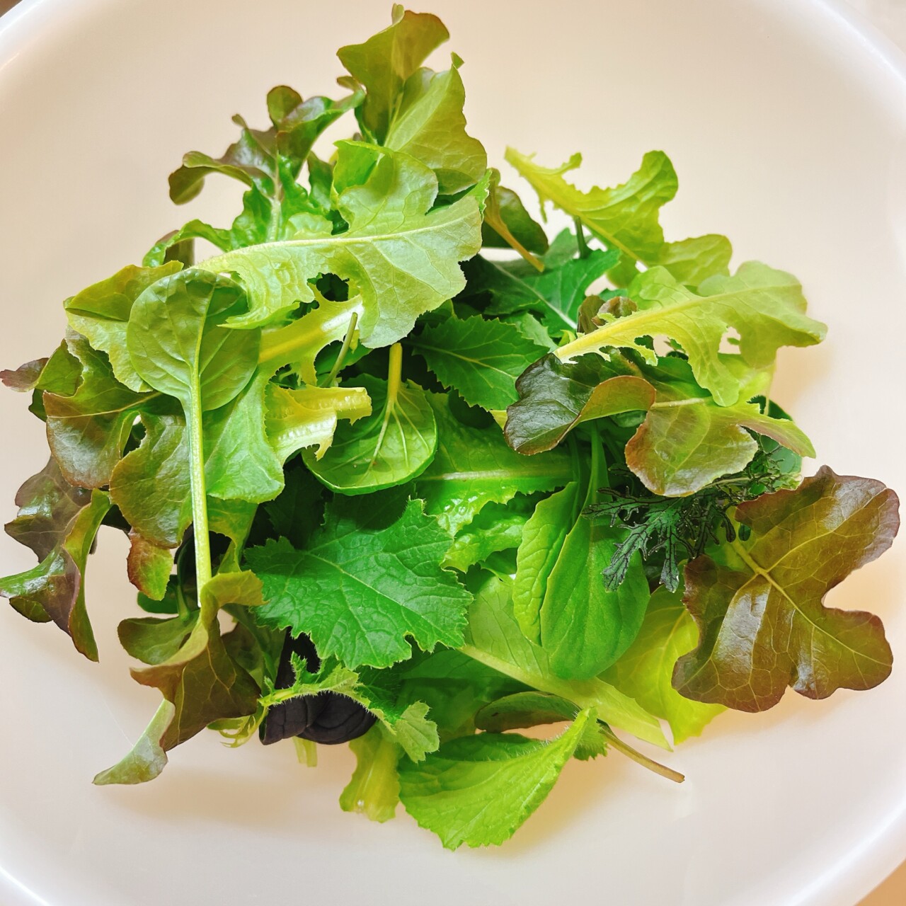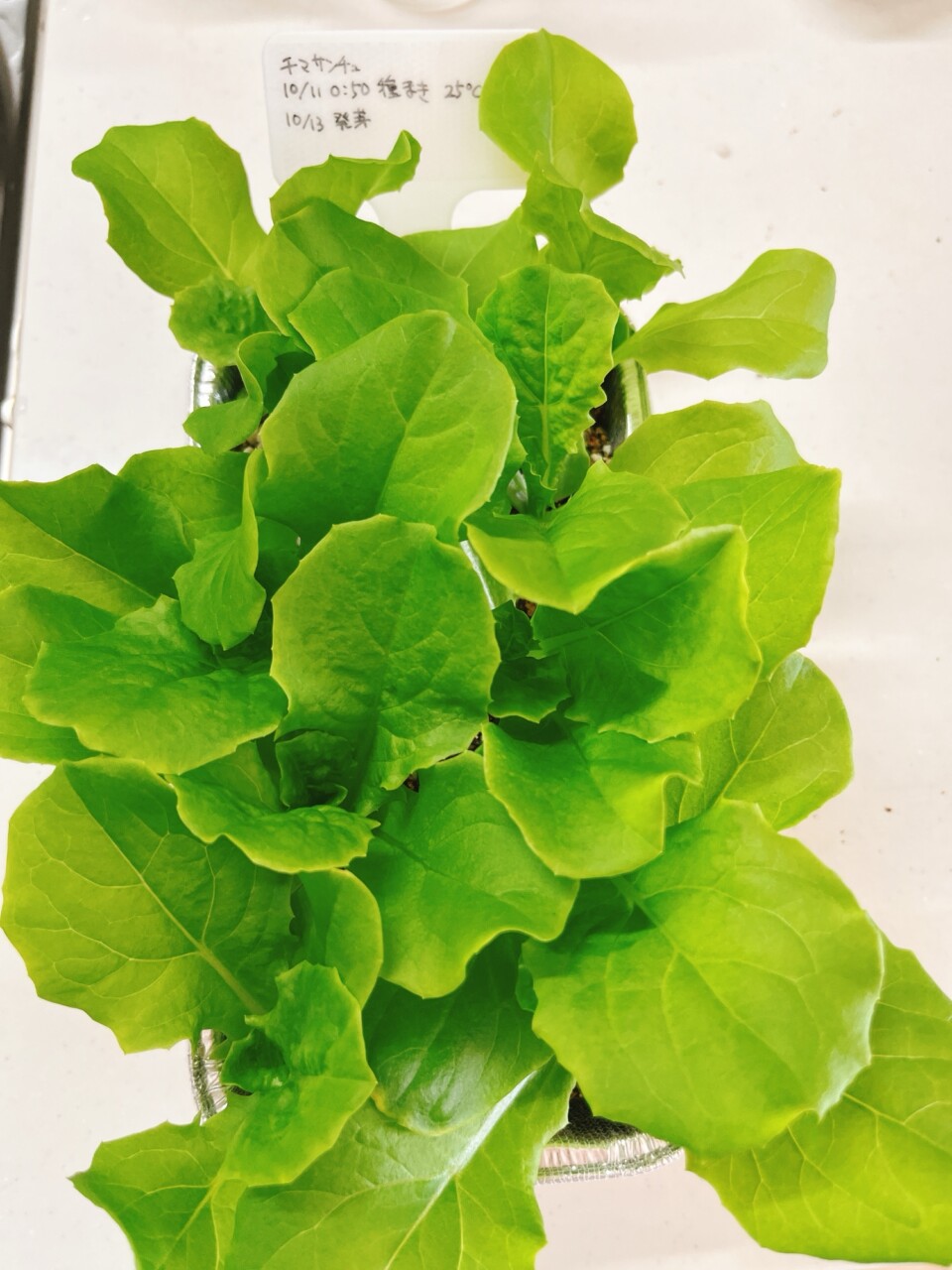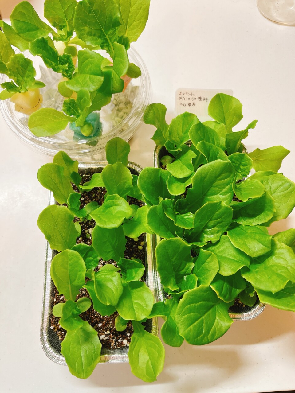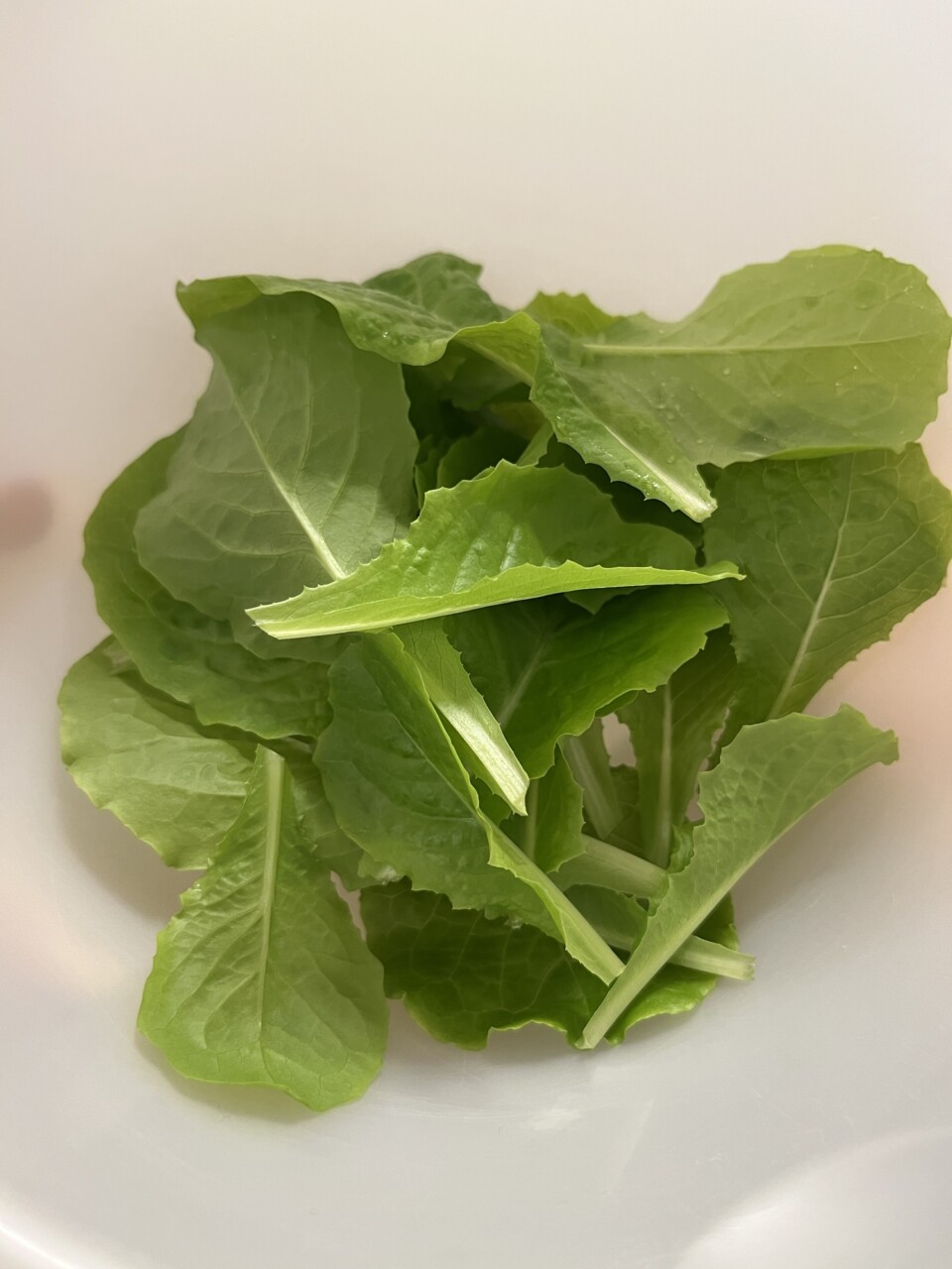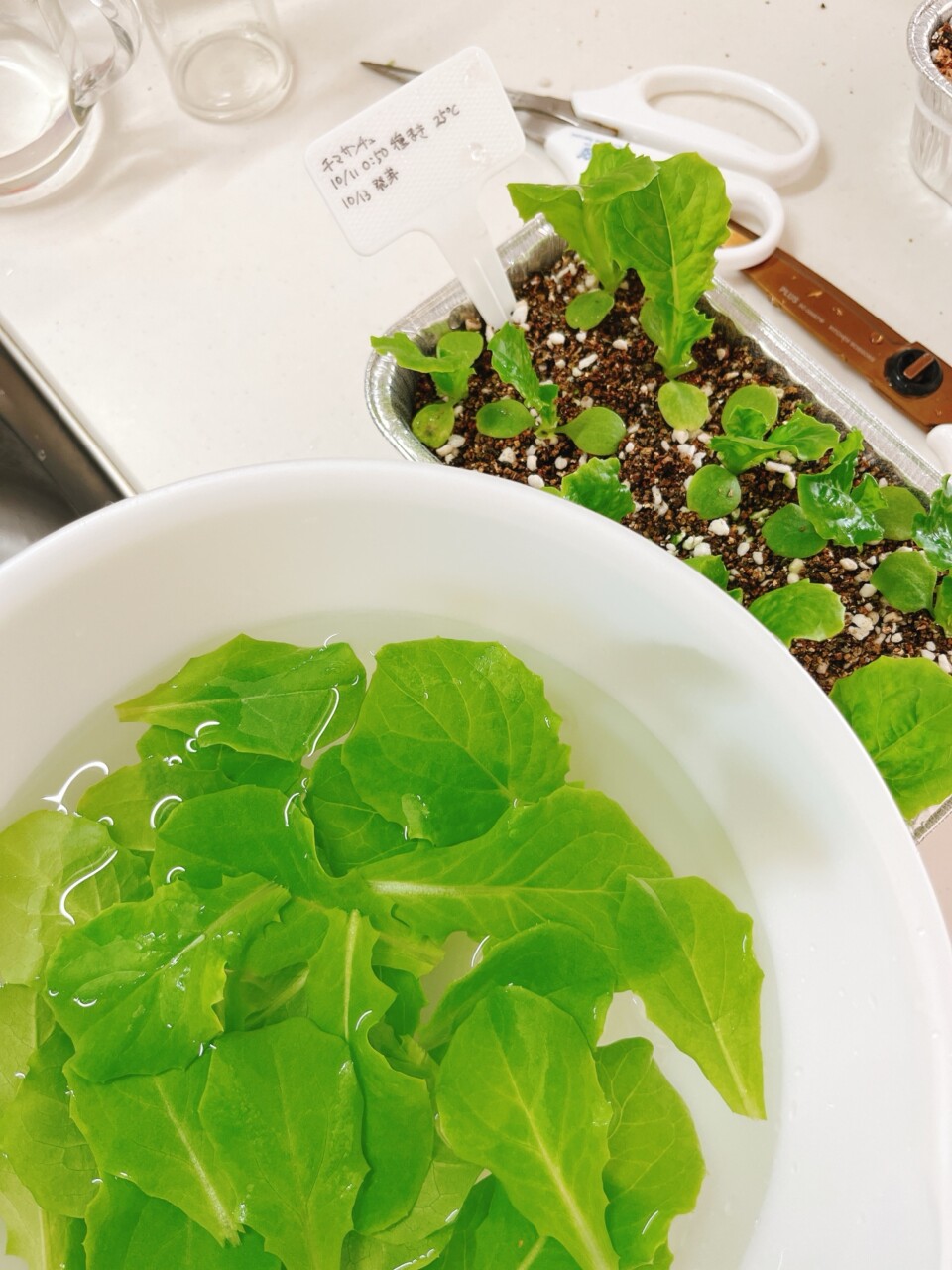 いっぱいになってきたので、外葉をハサミで収穫して美味しくいただく。若い葉っぱなので柔らかくて苦味がない。