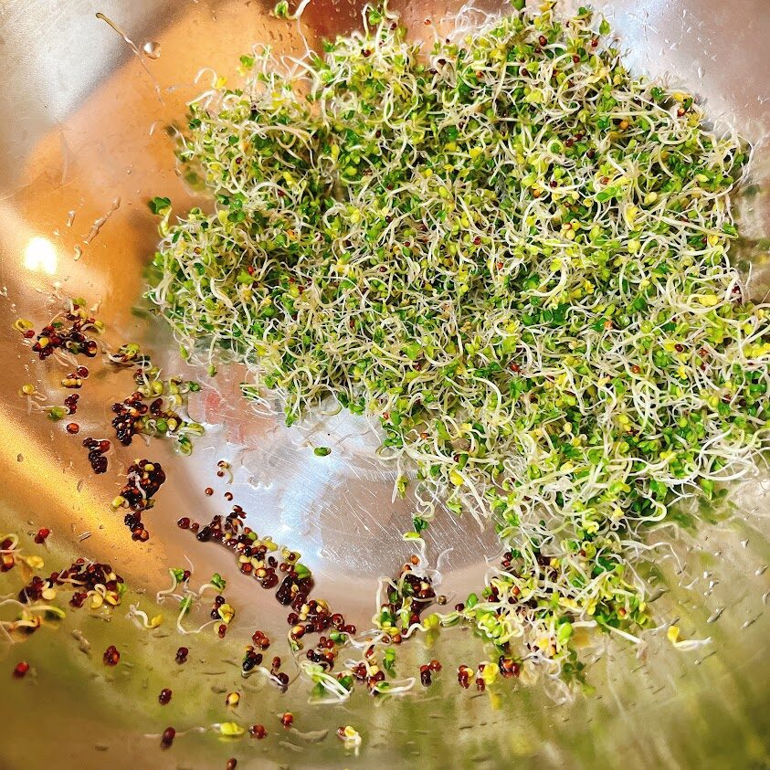 水気が切れて種の殻が少ないブロッコリースプラウトがパックいっぱいできます。