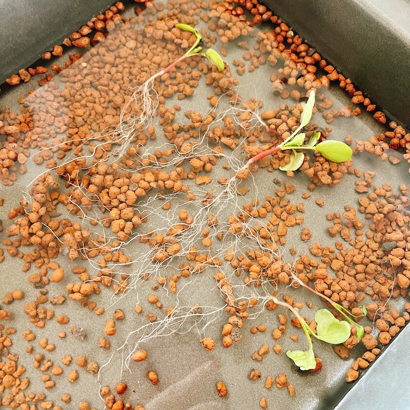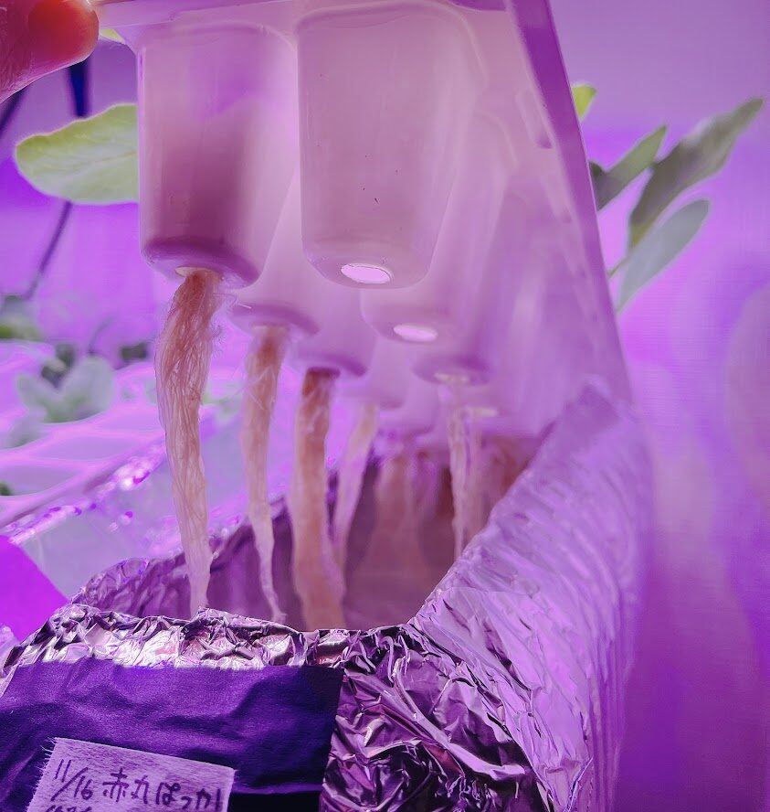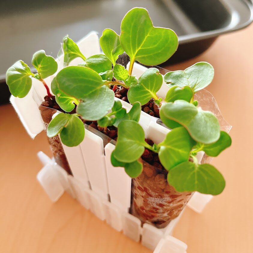 ものすごく成長がいいのが1株だけあって、これは24日でトレイの穴みちみちになり収穫。