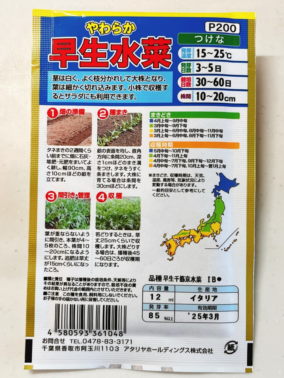 【アタリヤ】早生水菜(早生千筋京水菜)の種の情報